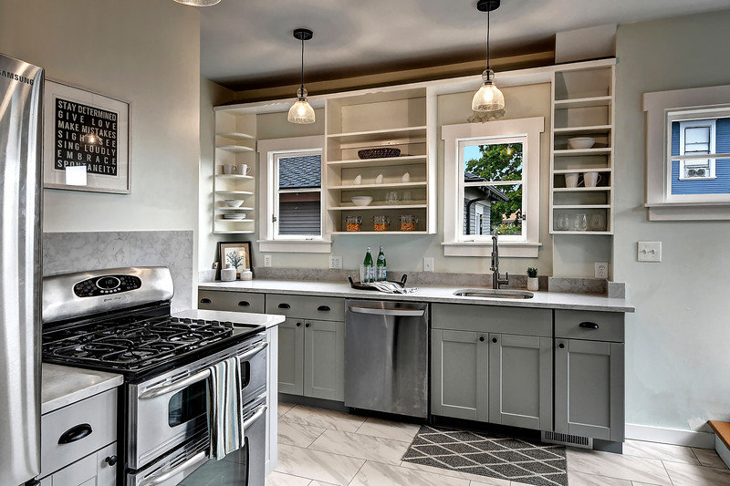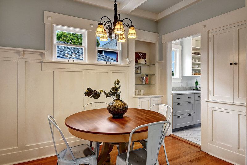 Picture perfect, light-filled Craftsman in prime Phinney location. Situated toward the back of the lot for ultimate privacy, this stunning two-story features a completely remodeled kitchen with new cabinets, quartz counters, and stainless steel appliances. The living spaces include meticulously cared for original features such as coffered ceilings, wainscoting, hardwoods, and oversized bay windows with abundant light. Views of the Cascades and breathtaking sunrises from east facing windows. Upstairs you’ll find two bedrooms. The master features a bonus room perfect for a nursery or office and a beautiful south facing balcony to enjoy the City and Mountain views. Next to the master is a fully remodeled bathroom with steam shower, clawfoot tub, skylight and stunning subway and hex tiles throughout. The basement features another full bathroom along with a flex area perfect for another bedroom, media room, or Mother-in-law suite. Outside you’ll find a huge yard with a flagstone patio and built-in grill. The newly constructed modern workshop is perfect for woodworking, extra storage, or an art studio. All this, just seconds from Green Lake and the amazing shops and restaurants of Phinney Ridge. Easy access to downtown via express bus or bike.